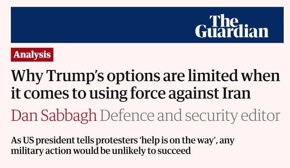 روزنامه گاردین در یادداشتی به قلم سردبیر دفاعی-امنیتی خود گزینههای ترامپ برابر ایران را محدود دانسته و تاکید کرده است که هرگونه اقدام نظامی علیه ایران موفقیتآمیز نخواهد بود.